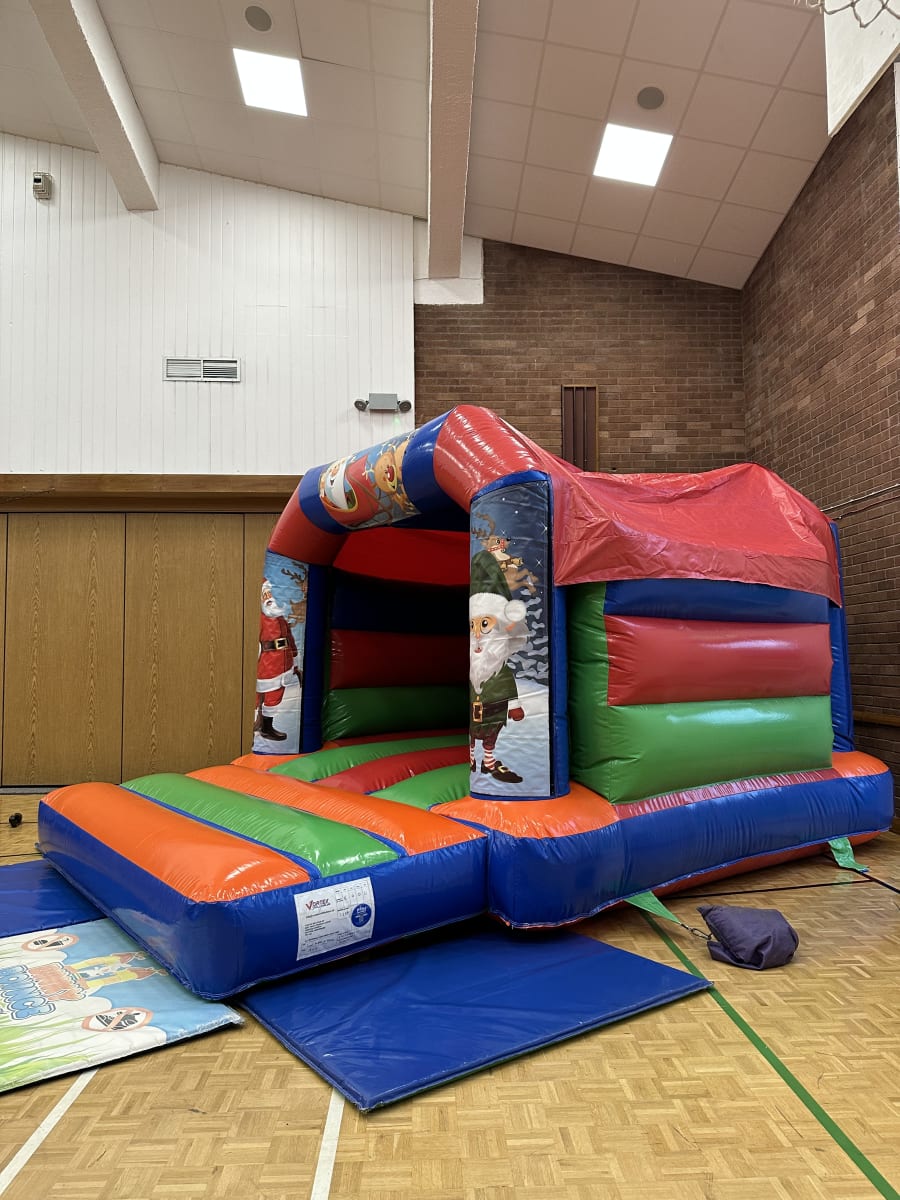 A Christmas Themed bright and colourful bouncy castle assured to provide endless fun!