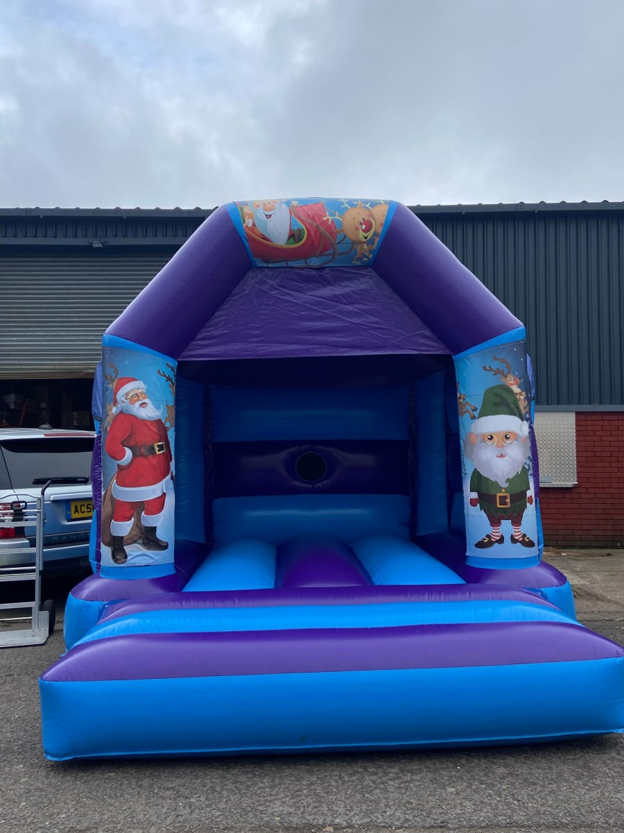 We hire to many schools, nurseries and party venues in and around Cardiff and The Vale of Glamorgan. To cater for all size requirements we also offer Christmas Theme Bouncy Castles in two Low height colours and designs! Please Click Here to see our most popular Christmas Red/Blue theme bouncy castle (8ft tall). Please also see our second low height (Also 8ft tall) Christmas Bouncy castle in Blue/Purple by Clicking Here.
