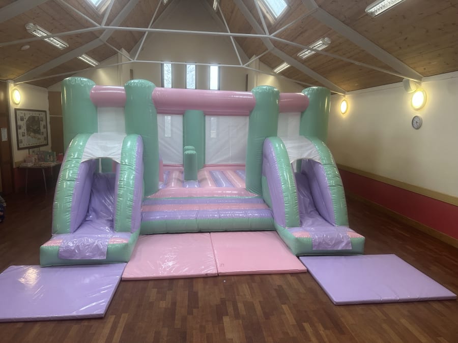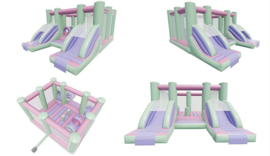 Bring soft colour and big fun to your next event with the Pastel Twin Front Slide Activity Bouncer. Perfect for kids’ parties and family gatherings, this inflatable combines a large bounce area with two slides for extra excitement. The design features pastel pink, green and purple shades that look great in photos and match many party themes. 🎉
